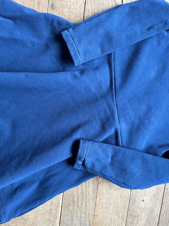 Robe manches longues bleu foncé avec col liberty, assez chaude. Portée, très bon état ; la couleur est un peu moins vive qu'à l'achat sur les coutures