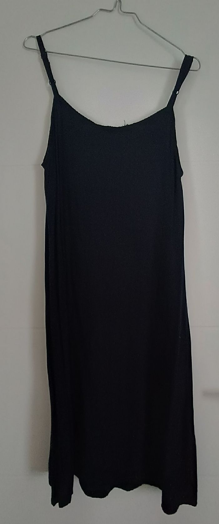 Robe a bretelles réglables Longueur jusqu'en-dessous des genoux Ajustable à la taille pour un lacet dans le dos L'encolure a été repiquer à la main car ça se décousait (photo jointe) Marque : CANAÏMA Taille M