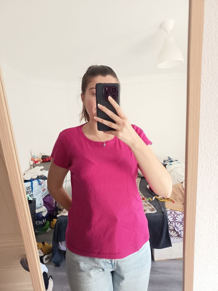 👉🏼 Dernière 📸 : 1 ligne droite vers le milieu du t-shirt qui a déteint légèrement blanc (ça se voit peu)