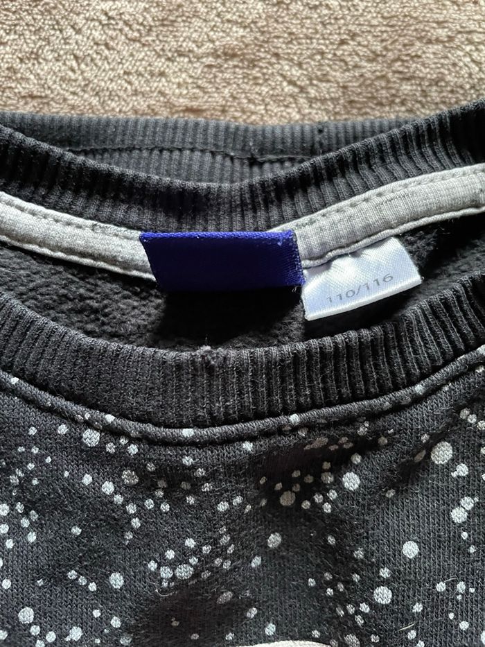 Ensemble jogging garçon de taille 5/6 ans état satisfaisant car traces d’usure sur les genoux ( voir photos ) et petit trou au niveau du haut au col qui se voit pas beaucoup