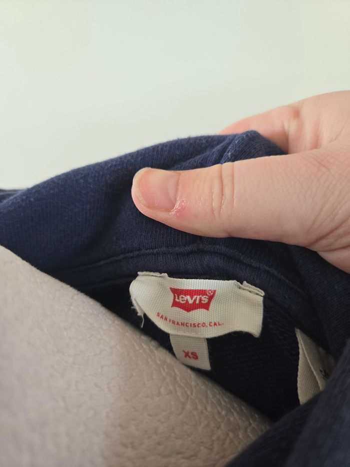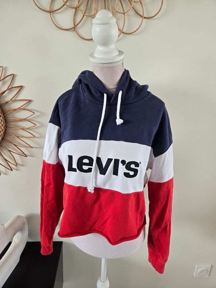 #XSfemme_tatianaalena Joli sweat Marque : Levi's Taille 📏 : taille XS État 🏷️: Tres bon etat ( micro tache voir photo ) Couleur 🎨 : Rouge / Bleu marine