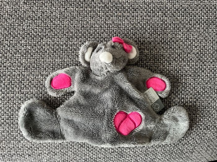 Doudou Souris Grise et rose Périclès Cœur Noeud #jessicaeden78doudous