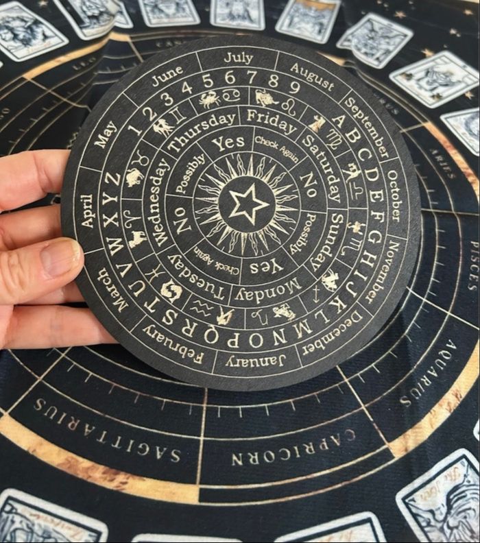 Je vends une Planche à pendule en bois Plaque ronde oracle divinatoire, Plaque en bois Diamètre 15 cm Créez le jeu de divination intéressant avec une fonction de 26 lettres de A a Z, les mots YES et NO et des motifs mystérieux, guidez votre voyage spirituel. À utiliser avec un pendule (non fourni) Design exquis : conçu avec des détails d'astrologie. Avec 26 lettres de A a Z, ce tableau facile à utiliser peut vous guiderez votre destin. Avec ses utilisations multifonctionnelles, c'est l'outil parfait à utiliser avec des amis pour la divination, la décision et plus encore. Option parfaite : pour ceux intéressés par la divination. Livraison soignée et remise en main propre possible a Chartres, secteur cathédrale
