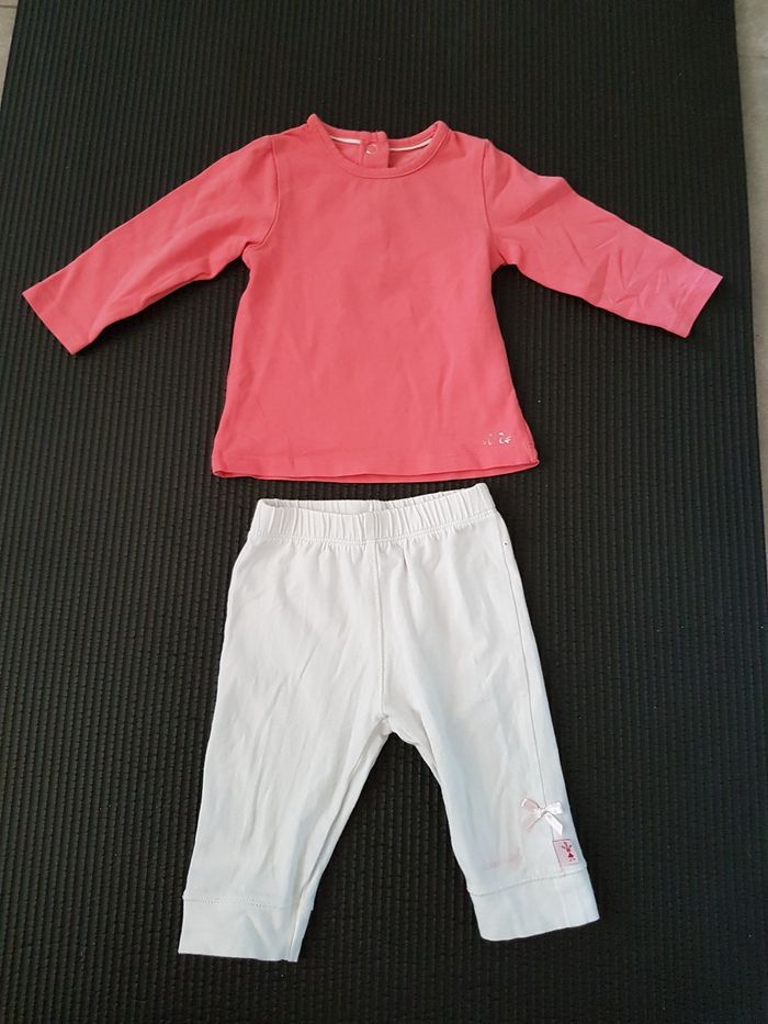Tee manche longue orchestra rose T 6 mois + legging blanc alaise Breizh T 6 mois en parfait état