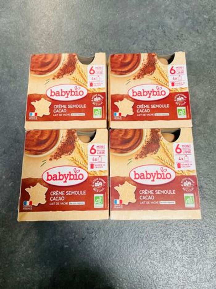 Babybio crème semoule cacao 6 mois et + 4 paquets de 4 gourdes soit 16 gourdes au total