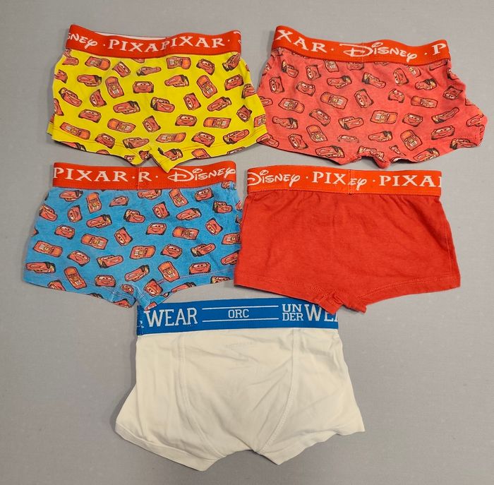 Vend ce lot composé de 4 caleçon garçon de marque Cars et 1 caleçon de marque orchestra. Ils ont été beaucoup porté d'où le bas prix.