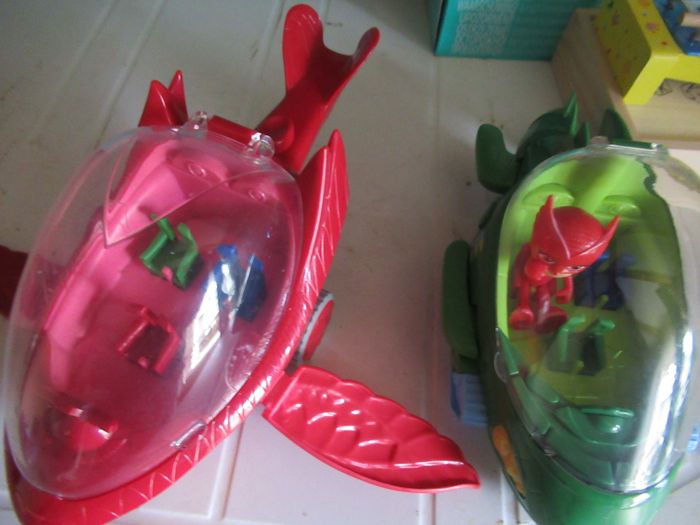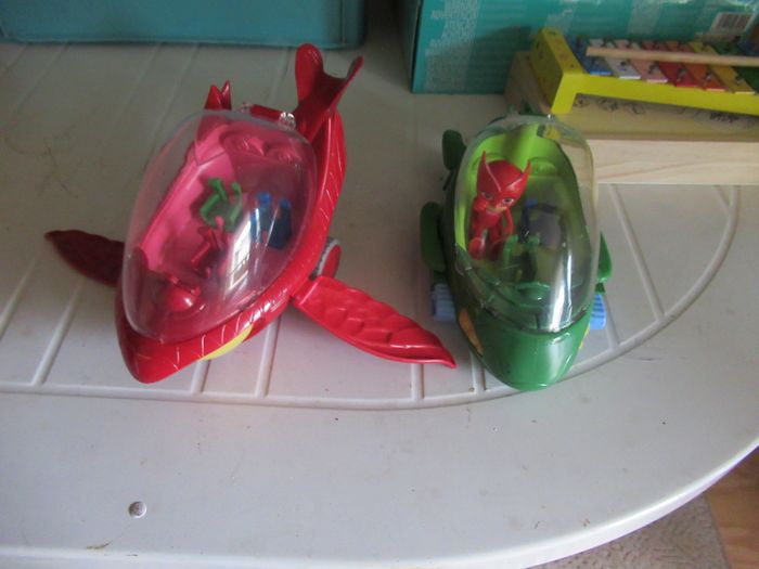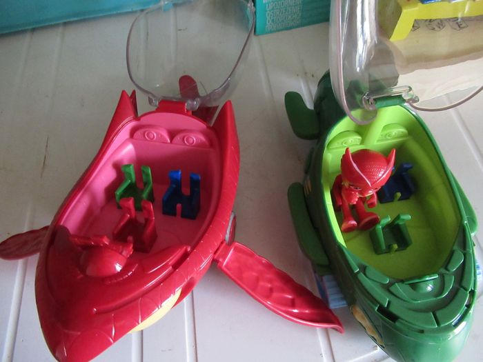 2 véhicules pyjamasques et 1 personnage (rouge)