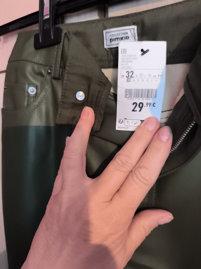 Pantalon kaki effet cuir de la marque Pimkie,coupe large très tendance, taille XS , neuf avec étiquette jamais porté