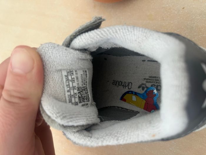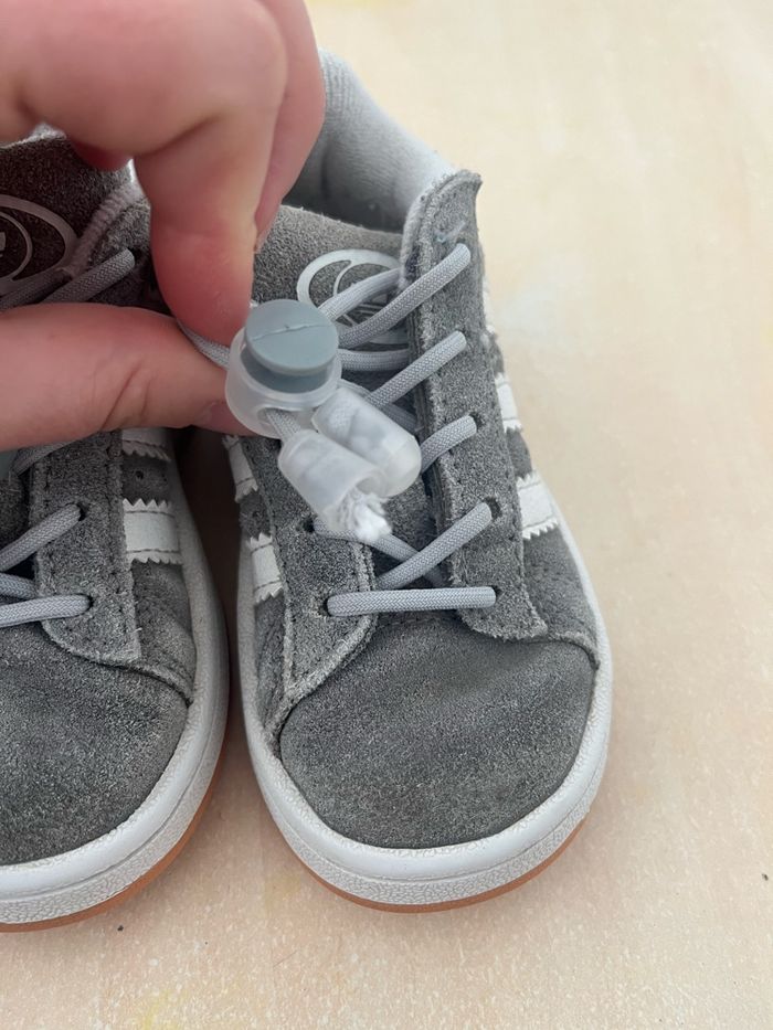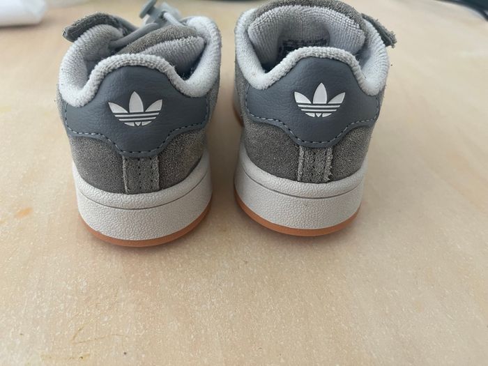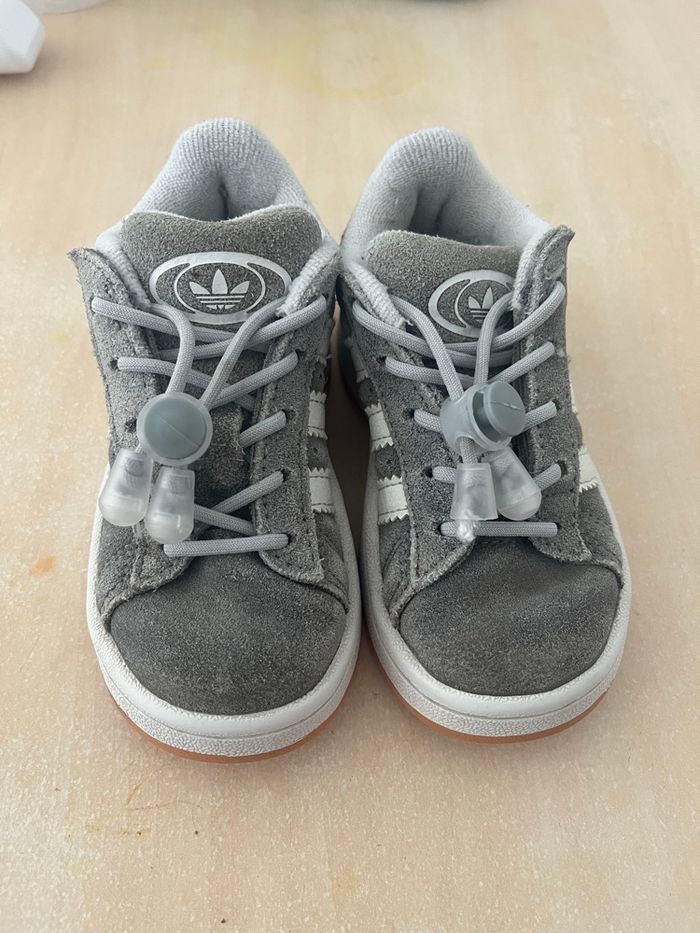 Campus Adidas taille 25. En bon etat général, les lacets ont été changés par des lacets élastiquese pour plus d’autonomie, il manque un petit cache plastique sur le lacet ( voir photo)