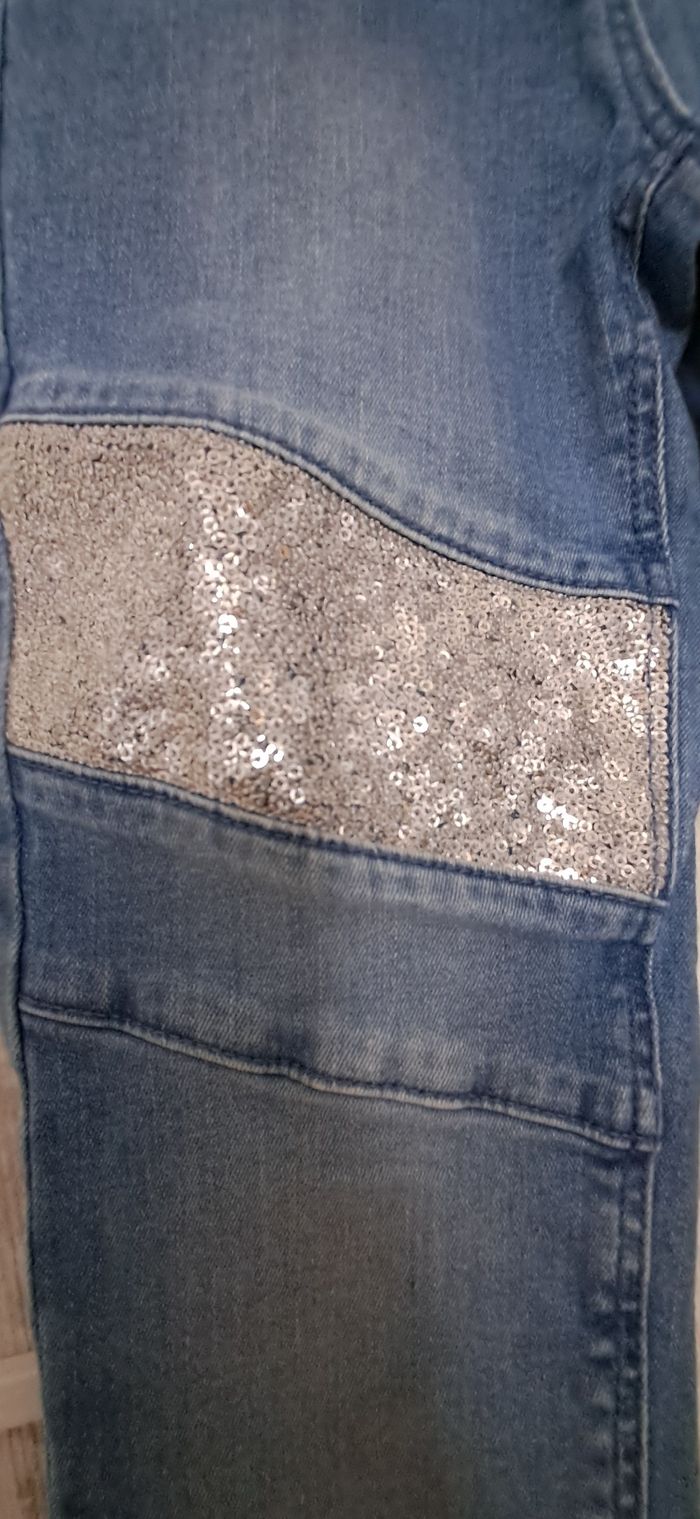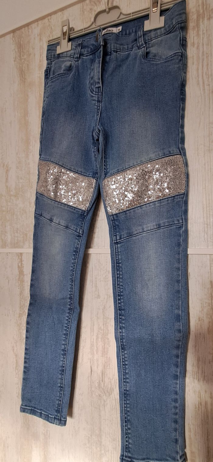 Jean fille 10 ans 2 poches avant et 2 poches arrière Sequins sur les cuisses Un peu délavé mais en bon état