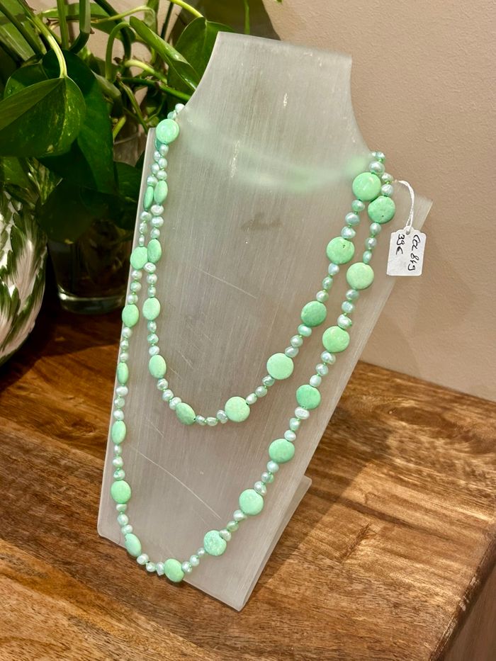 Collier double maille marine perles nacrées acier inoxydable réglable