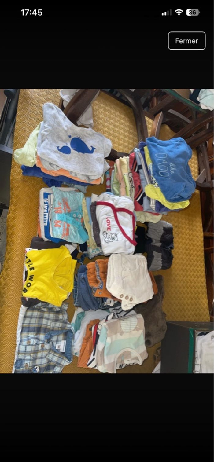 Lot 6 mois garçon 2 chemises 7 combinaison été/ salopettes 5 t shirt manches courtes 6 t shirt manches longues 2 pulls dont un adidas 1 gilet 2 shorts 10 bodies 18 pyjamas 9 pantalons #6moisgarçon #lots6ans
