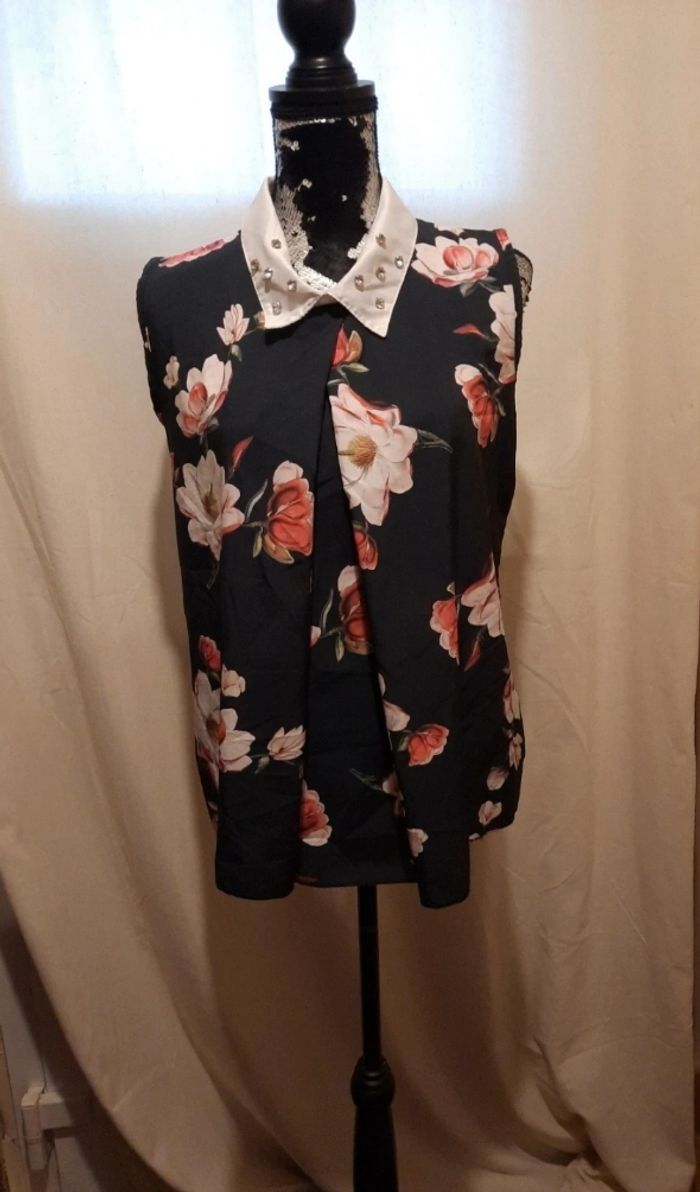 Débardeur léger de taille 38/40 Avec quelques strass sur le col en très bonne état N hésitez pas à faire un tour dans mon dressing et achetez en lot vous ferez des économies sur les fdp 😉