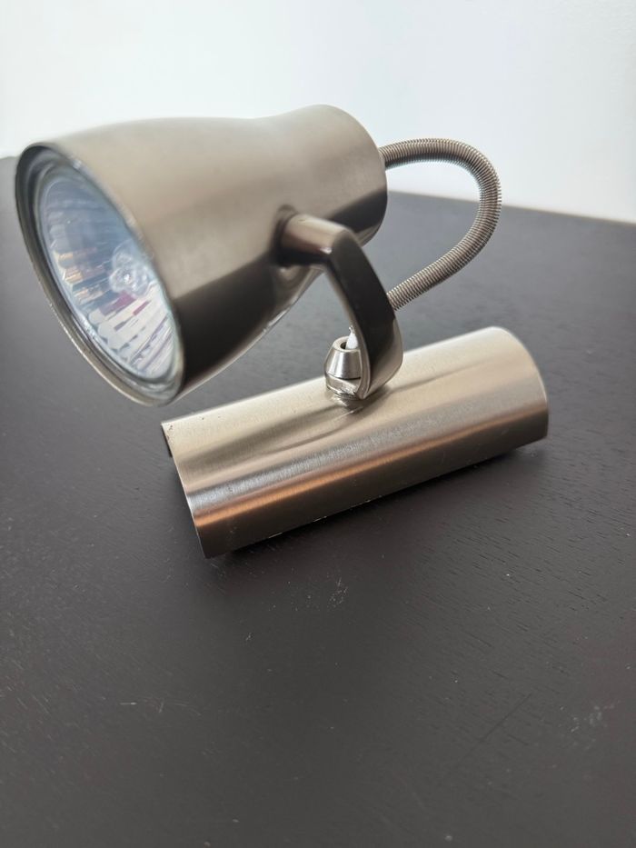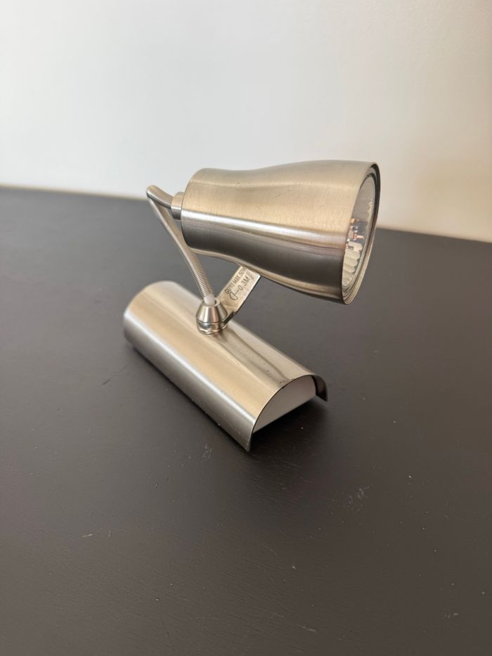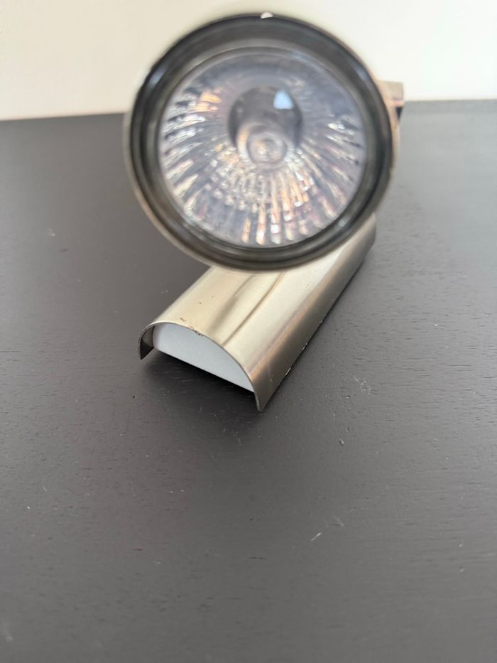 Spot en très bon état J’ai laissé l’ampoule pour modèle mais je ne sais plus si elle fonctionne Quelques petites traces à peine visible Avec interrupteur