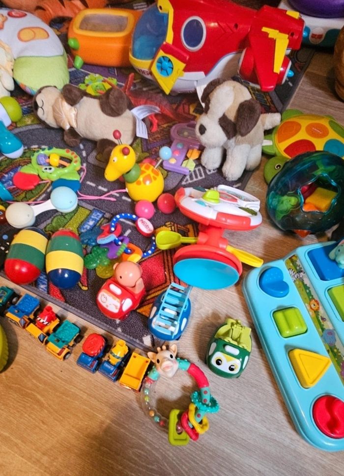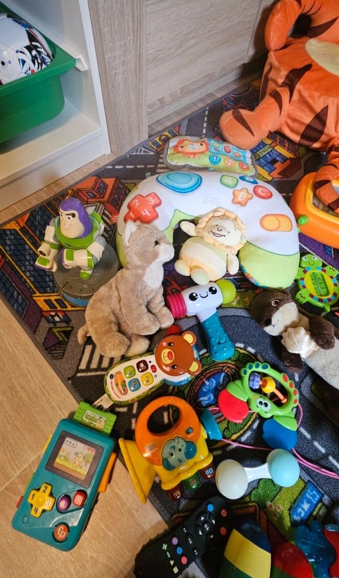 Bonjour Vend lot jouet bébé Ce lot comprend 40 articles Il y as de tout des jouets proches du neuf d autre d'occasion. Les jouets sont vendus sans les piles. Il y a également un pouf tigrou Idéal pour les nounous