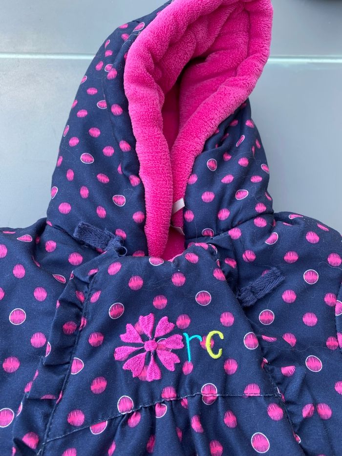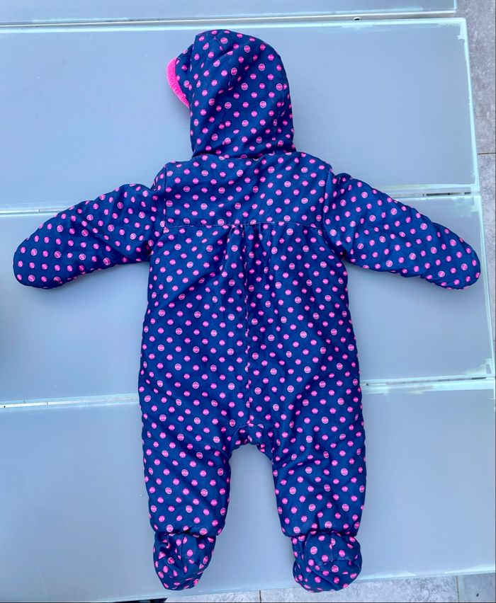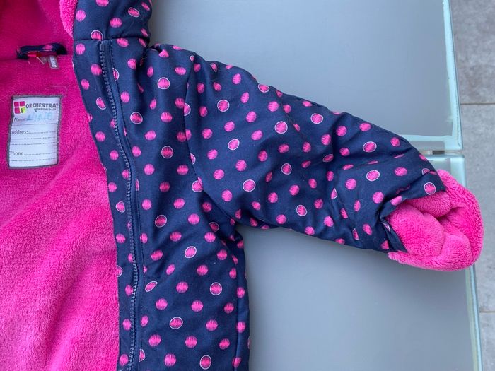 Jolie combipilote pour bébé fille, de la marque Orchestra pour un bébé bien au chaud pendant l’hiver, ou lors de sortie à la neige. Très bon état, très peu utilisée. Taille 12 mois (74cm)