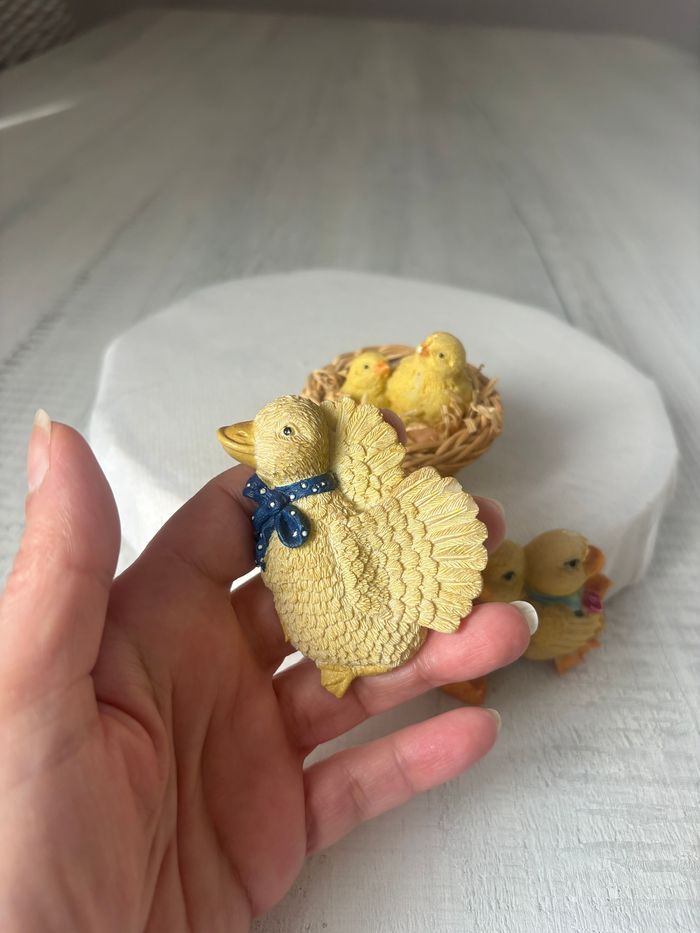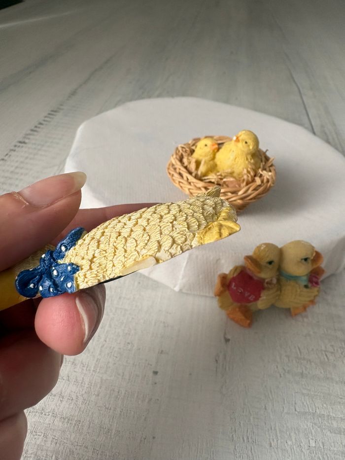 Décoration de Pâques Lot de 3 magnets poussins - Sur les 2 poussins 1 petit pet sur la patte côté cœur - le grand poussin du nid à un pet sur le bec - le poussins avec foulard à une patte cassée Reste en bon état * Prix non négociable ⚠️ Envoi uniquement par Mondial Relay