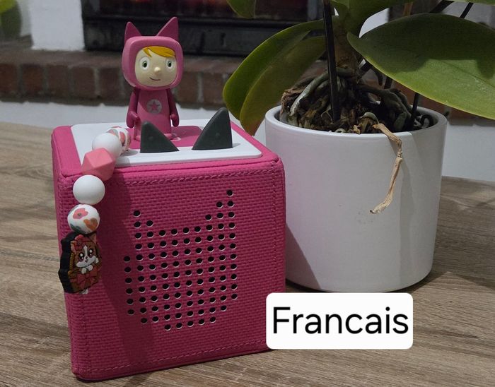 C'est une tonie box allemande, son créatif est allemand (mais comme le contenu se change ....). Paramétrée en français. fonctionne parfaitement