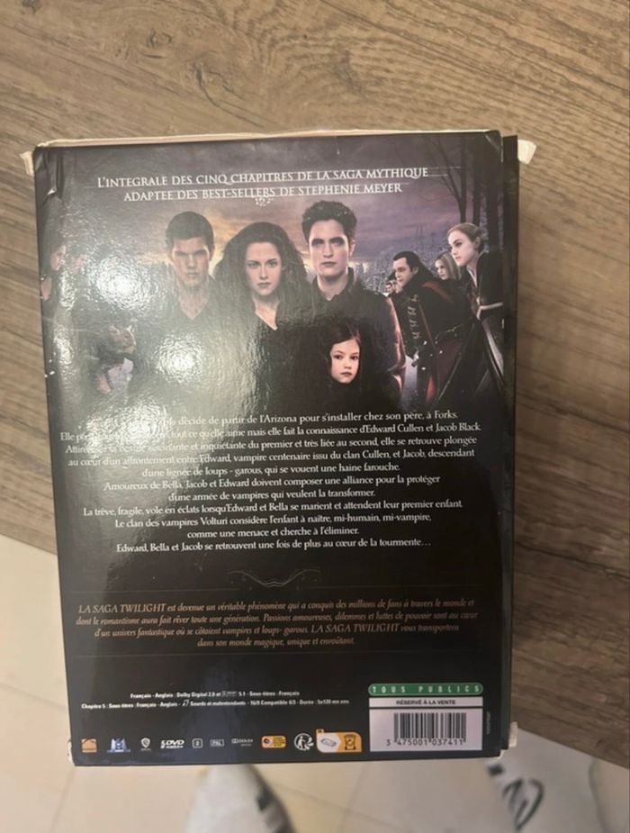 DVD la saga de Twilight intégral boîtier un peu abîmé, j’ai remis du scotch d’où le prix