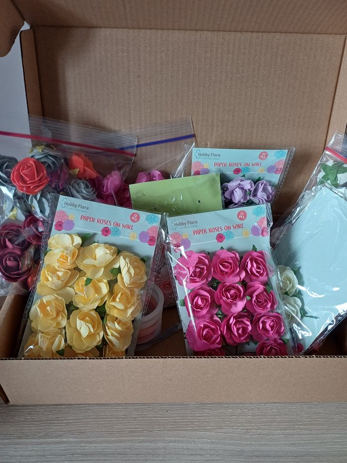 Lot de fleurs pour scrapbooking de toutes couleurs et matieres