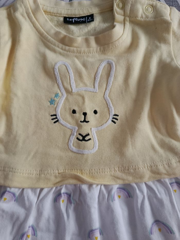 Pièce essentielle du vestiaire enfant, cette robe courte Influx allie douceur et praticité pour le confort des tout-petits. Catégorie : robe courte Taille : 6-9 mois / 68 cm Couleur : jaune clair avec jupe blanche imprimée de petits arcs-en-ciel Marque : Influx État : très bon état Matière : coton doux et confortable Détails : fermeture par pressions à l'épaule pour un habillage facile, motif lapin brodé sur le haut, jupe légèrement froncée pour un joli volume À porter avec des collants ou leggings pour un look tendre et adapté aux saisons fraîches. Chaque article est vérifié, préparé et conforme à sa description. Expédition rapide depuis la France avec emballage soigné. Description fidèle, article prêt à porter dès réception.