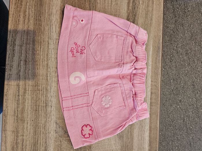 Lot de 2 jupes taille 6 mois En bon état Manque des strass sur la violette (photo 4) et sur la rose (photo 8). Un passant de ceinture nécessite un point de couture sur la violette (photo 5)