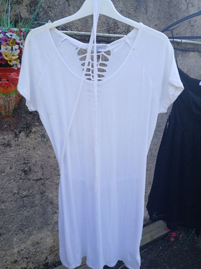 Bonjour! Je vends cette très jolie robe blanche d'été en parfait état . Je ne l'ai jamais porté. Attention celle ci est transparente . Taille : 42/44 Couleur : blanche Matiere: coton Marque : u Collection