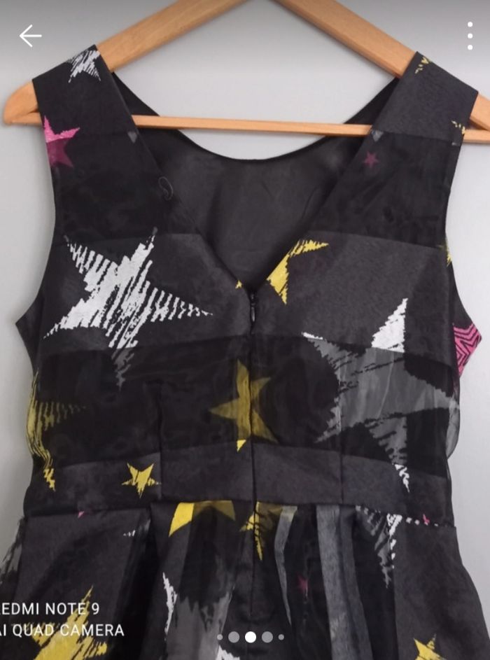 Polyester. T48 italienne d' où t44? Mesures prises à plat : aisselles : 48cm, empiècement entre haut et bas : 41cm, longueur : 95cm.