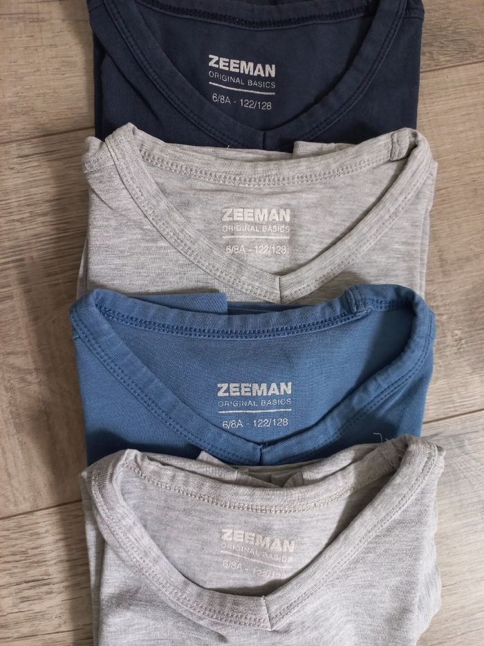 Lot 4 maillots de corps Zeeman 6-8 ans Très bon état (petite marque rouge discrète sur un gris voir photo)