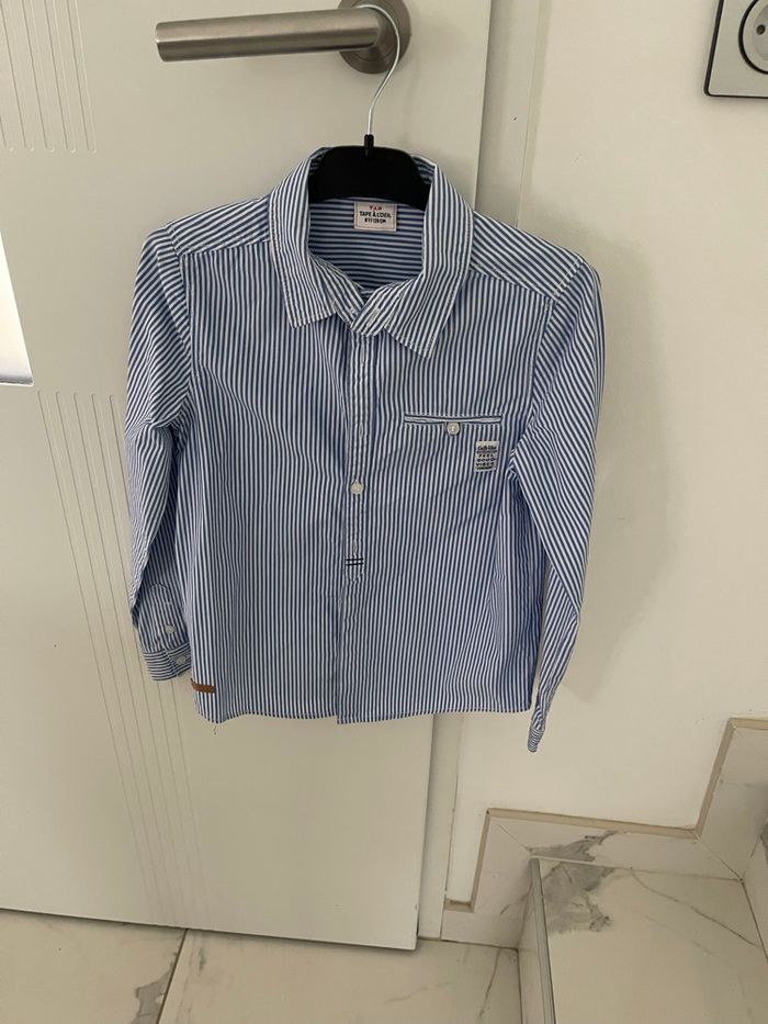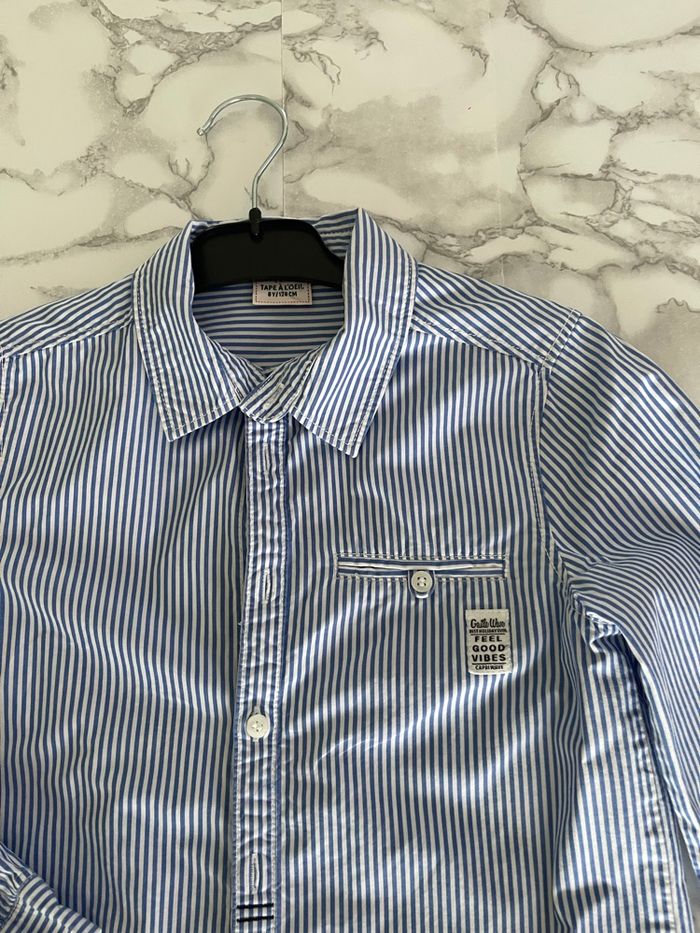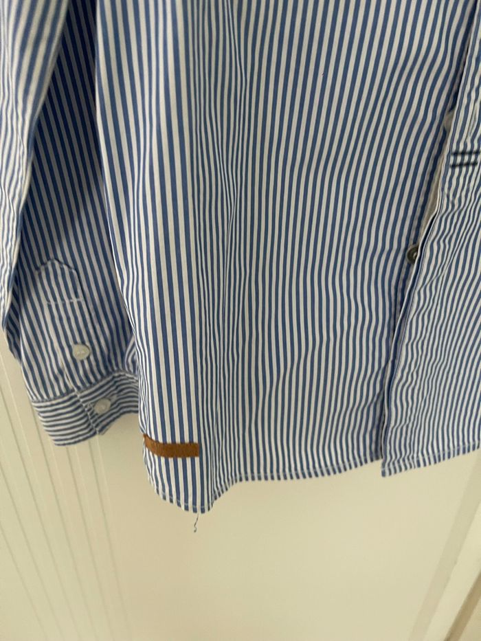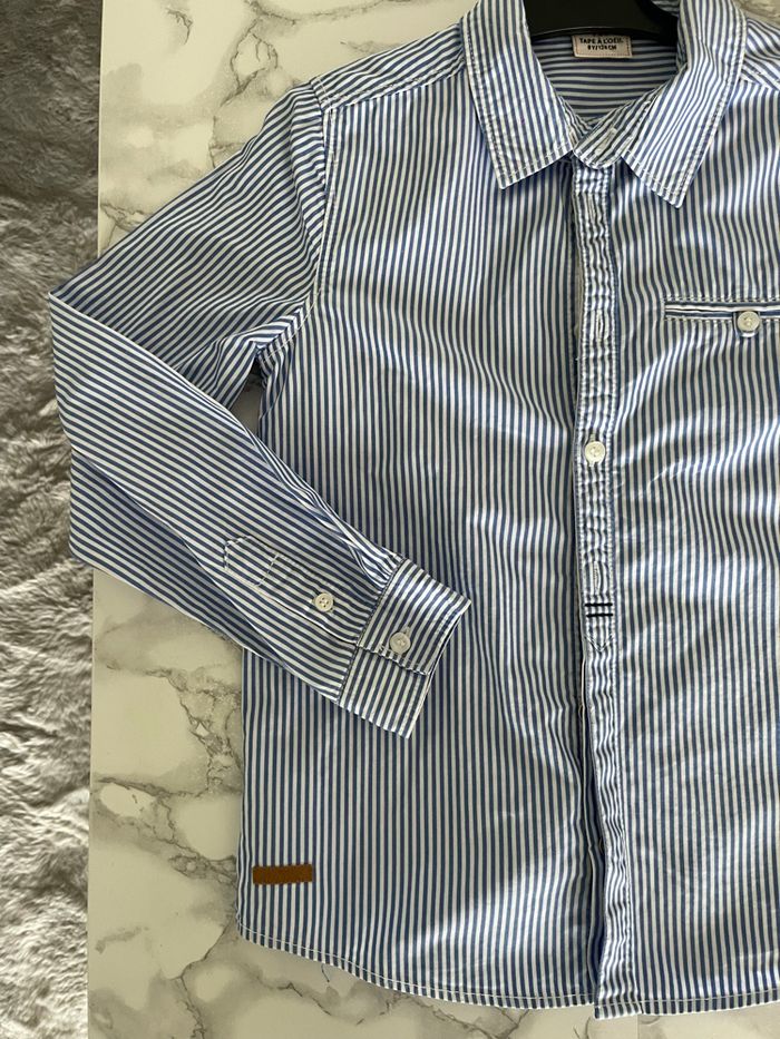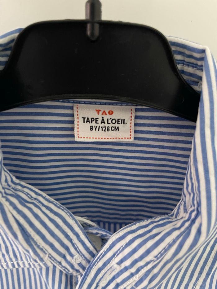 Vend chemise rayé manche longue Aucun défaut comme neuve porté 1 fois seulement . Taille 8 ans ou 128 cm De couleur bleu et blanche