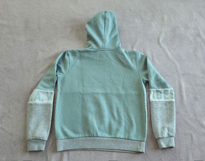 Sweat à capuche en bon état. Un légère tâche sur une manche peu visible. (voir photo) N'hésitez pas à me contacter si vous souhaitez plus de renseignements ou de photos !