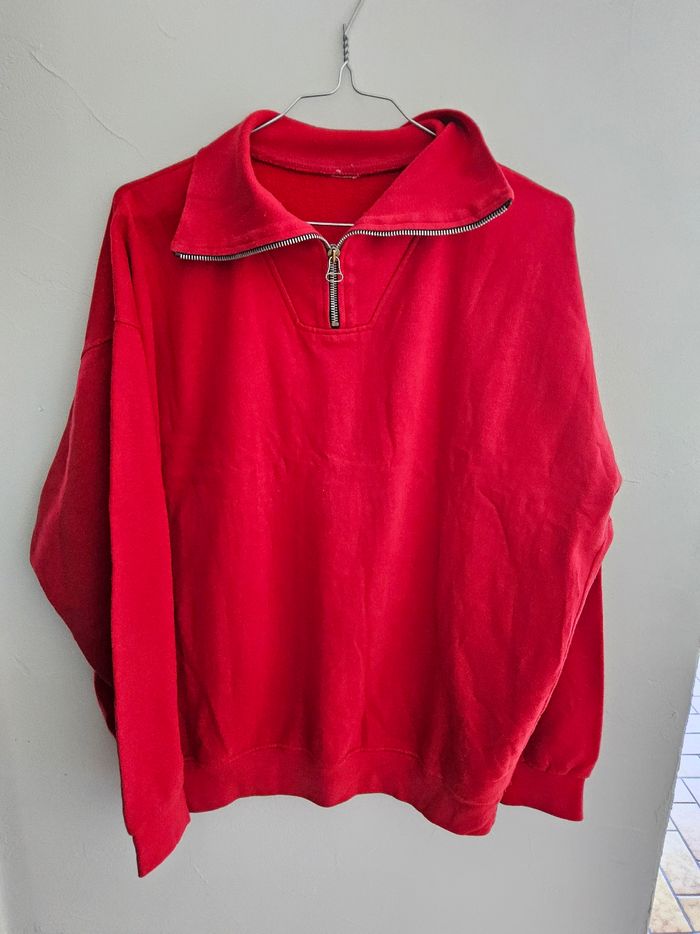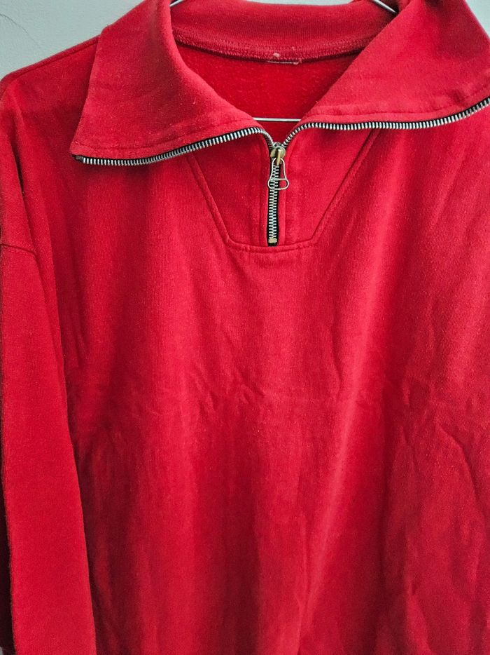 ❤️ Sweat rouge col zippé – Coupe oversize (50/52/54) Sweat rouge avec col zippé, confortable et tendance ❤️ Parfait pour un look casual avec jean, legging ou jogging. ✨ Coupe ample style oversize ✨ Matière douce et agréable à porter ✨ Détail zip au col pour un style moderne 📏 Détails Coloris : rouge Col zippé Manches longues Coupe large et confortable 📐 Mesures : Aisselle à aisselle : 66 cm Longueur : 66 cm ➡️ Convient à une taille 50 / 52 / 54 selon le rendu souhaité 🧼 État : bon état