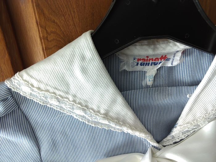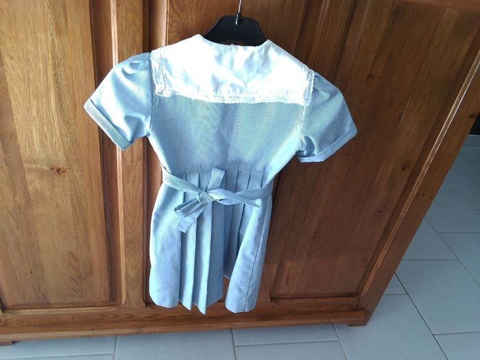 1 robe tergal fines rayures blanches et bleues Col blanc bordé de dentelle Marque rainette 4 ans 5€