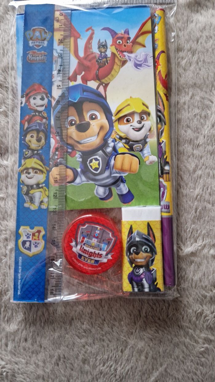 Bonjour La friperie de Nady vous propose cet ENSEMBLE DE PAPETERIE PAT PATROUILLE comprends : 1 bloc note , 1 taille-crayon , 1 règle , 1 crayon , 1 gomme Taille; 5 pcs Couleurs : multi Envoie sous 48 à 72 heures N'hésitez pas a venir sur notre profil, vous y trouverez tous nos articles et reste a disposition pour plus de renseignements