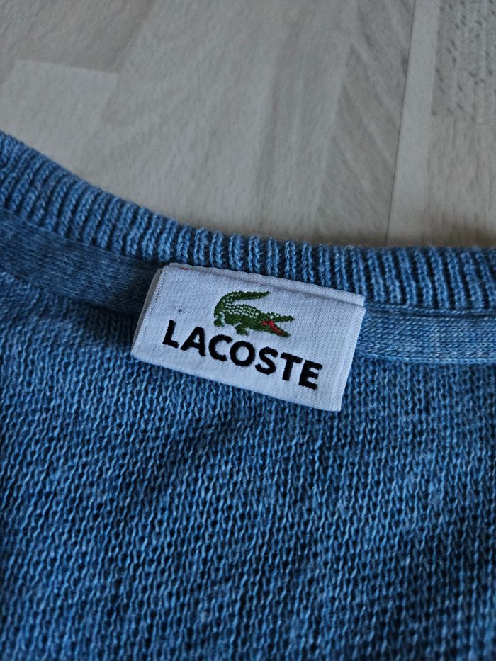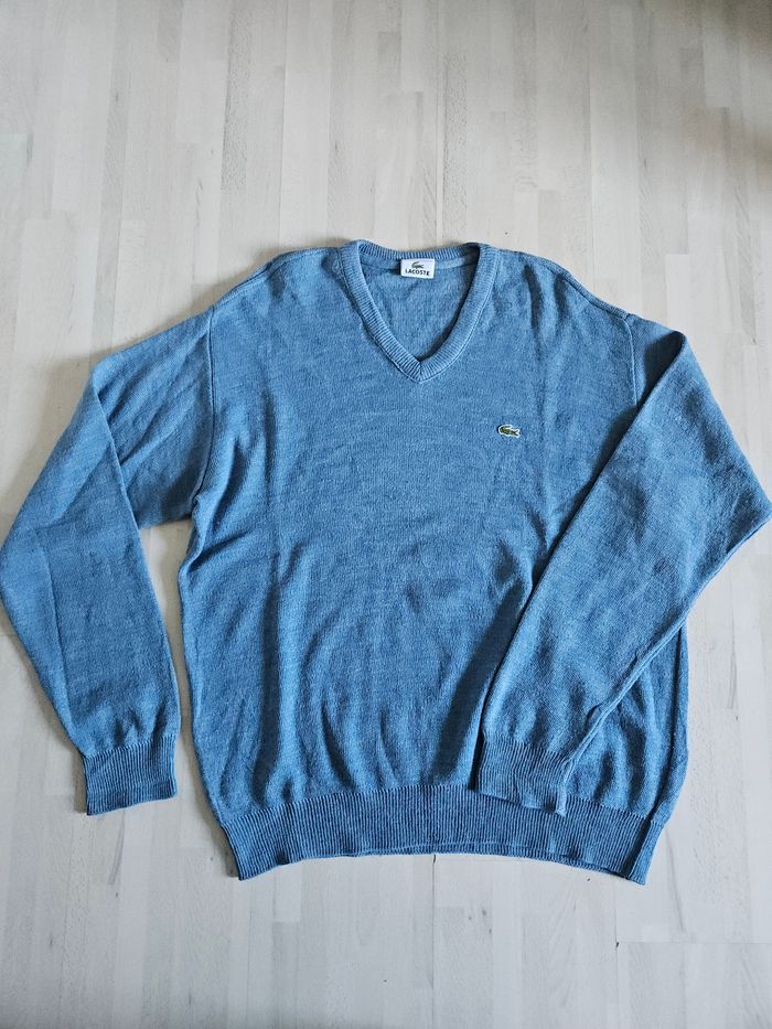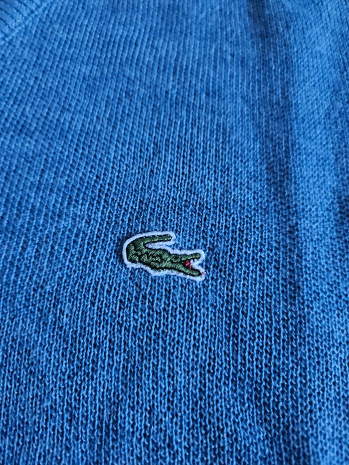 Sweat pull col v lacoste vintage homme bleu ciel L très bon état