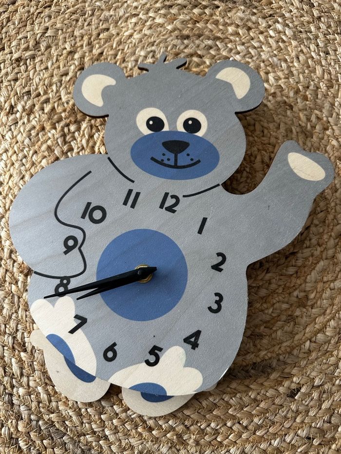 Pendule en bois enfant en parfait état. Très peu servie. Fonctionne à l’aide d’une pile (Attention : pile non fournie lors de l’achat)