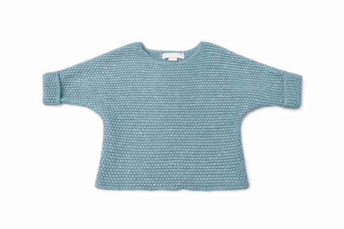 Pull fille, manche 3/4 chauves souris, laine argentée. 4 ans.