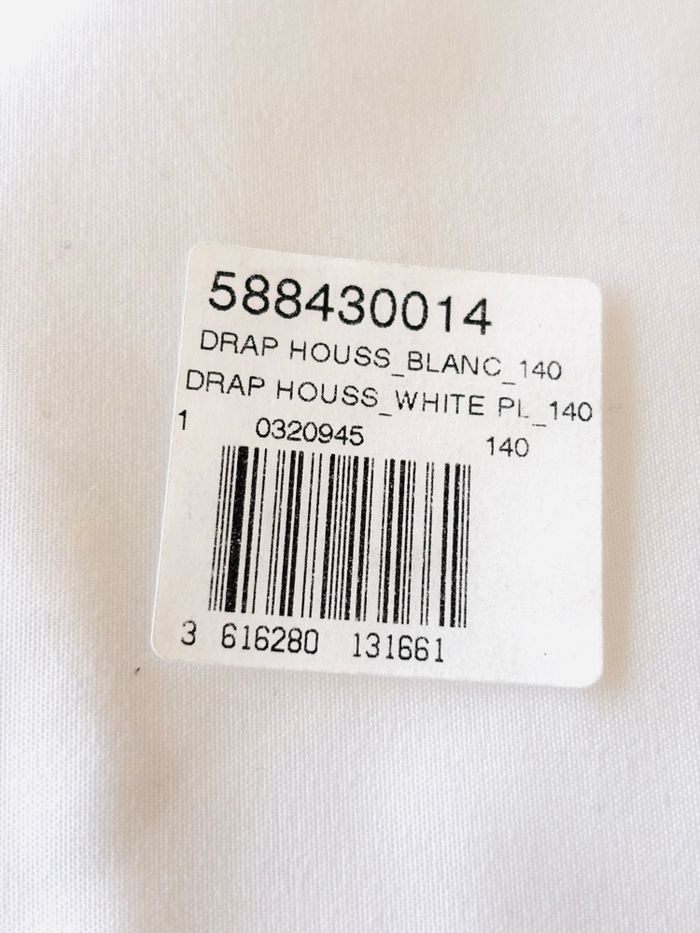 couleur blanc, coins élastiqués. Bonnet de 30 cm