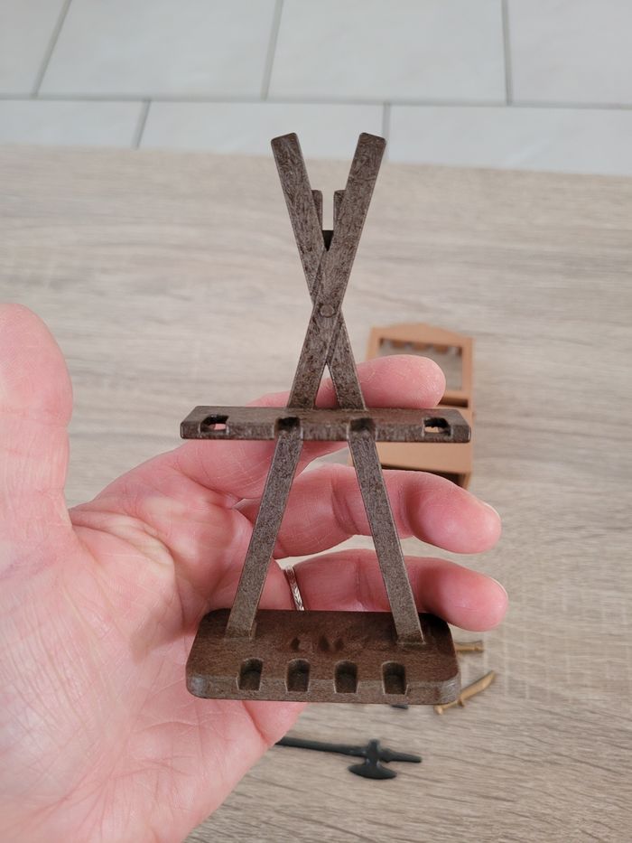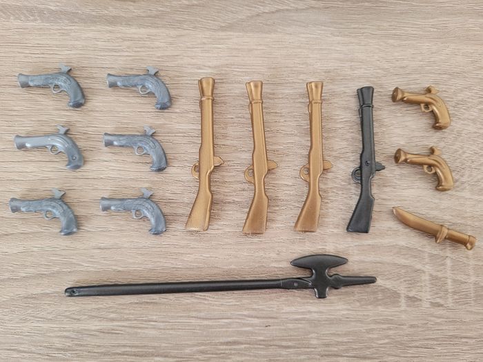 Vend lot d'accessoires playmobils comprenant des armes et meubles de rangement pour fusils. Lot en bon état (voir photos). Vendu tel que sur la publication.