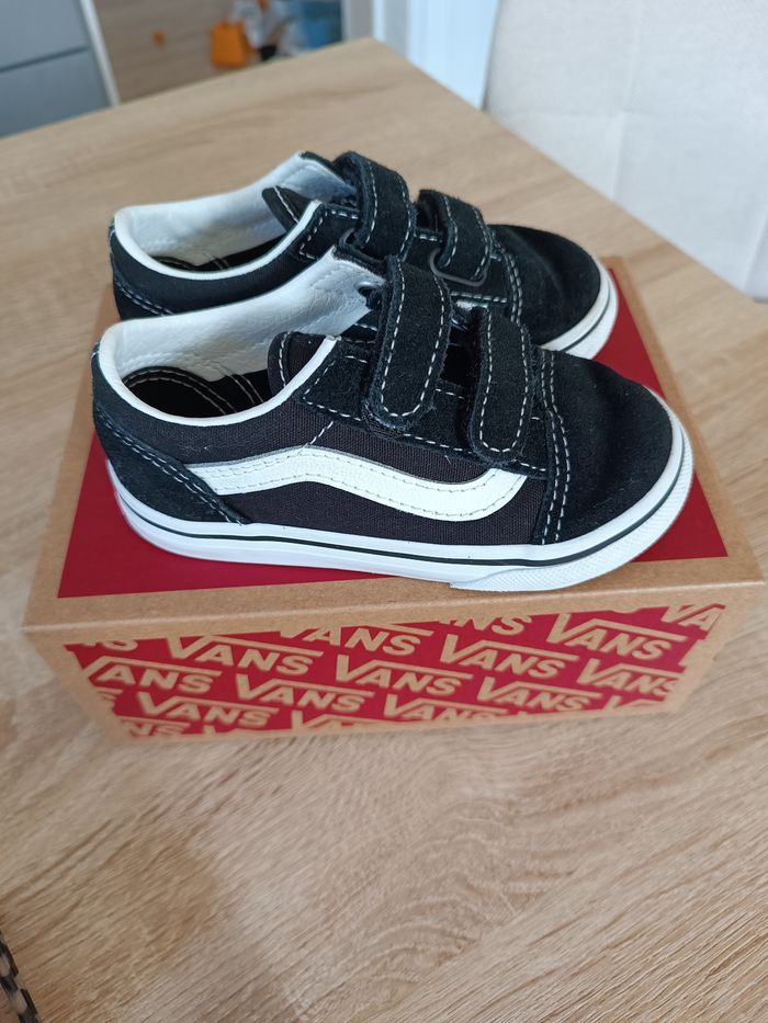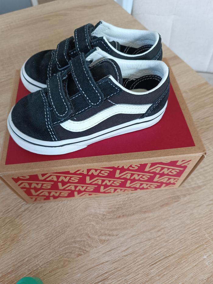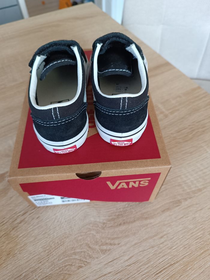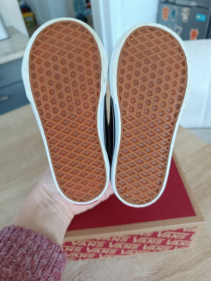 Vend paire de baskets Vans taille 24 (attention la marque taille grand donc correspond à une taille 25) adapté pour pieds fins. Achetée 40€ il y a une semaine elles ne conviennent pas à mon fils. Elles sont en parfait état comme l'atteste les photos.