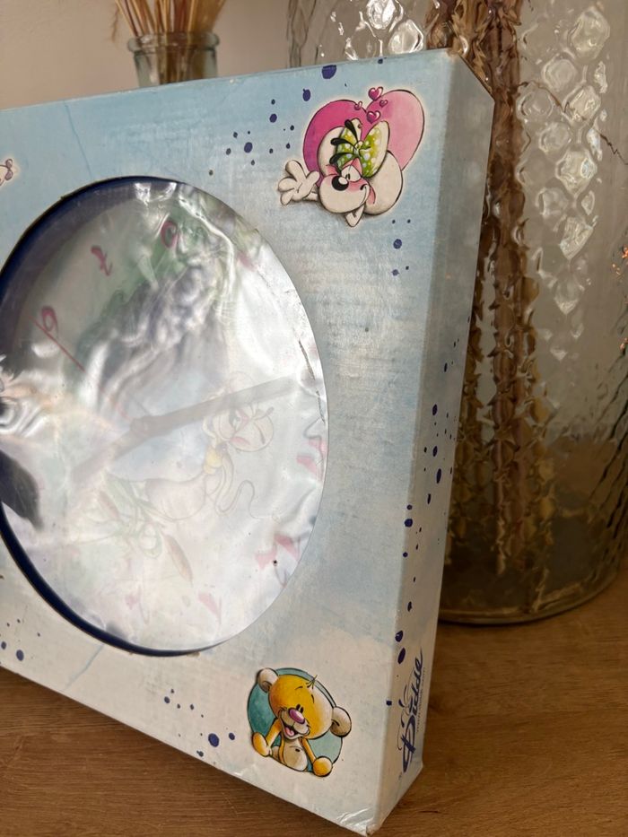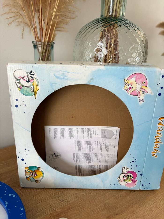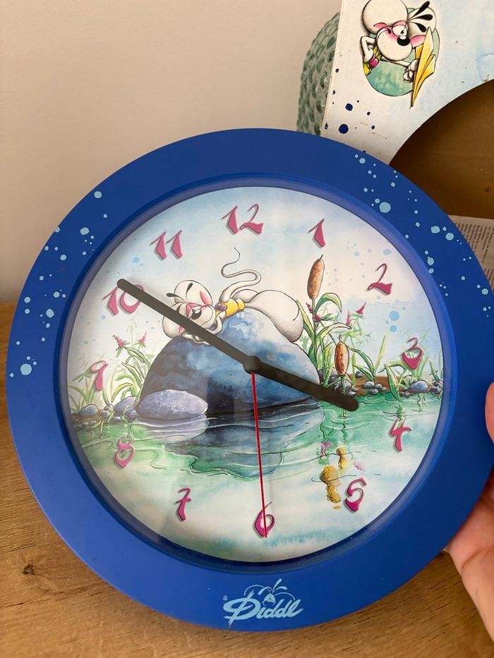 Horloge Diddl avec sa boîte d'origine +la notice Couleur Bleu Thème : Didal et la marre Environ 24,5 cm de diamètre Elle est fonctionnelle (Pile non incluses)