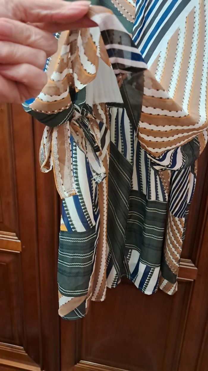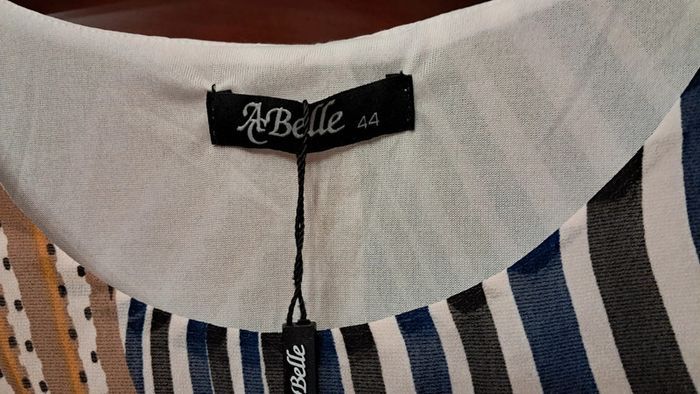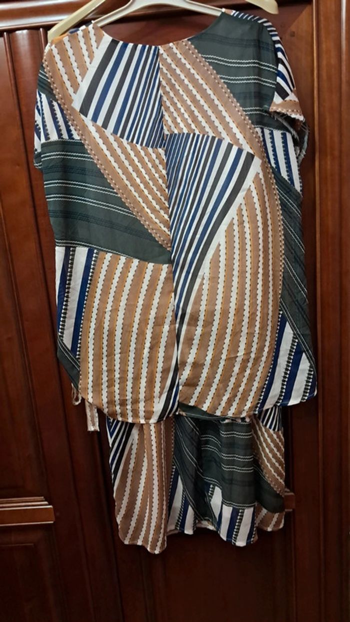 Robe très agréable à porter. Manches courtes Voile polyester entièrement Doublée Cache les rondeurs au niveau de la taille... Longueur genou NEUVE Taille 44.