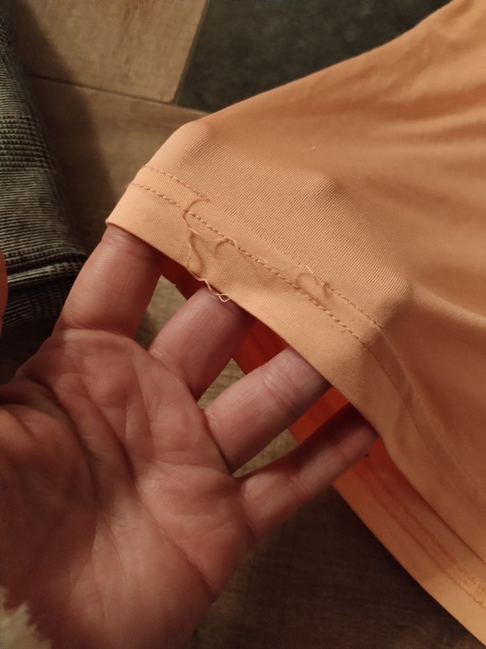 Joli orange saumon. Très bon état sauf un fil en bas qui se défait.