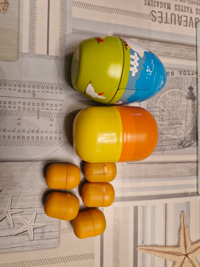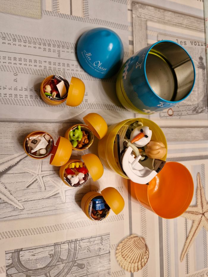 Vends ce lot composé d'œufs kinder. Le grand Reine des neiges, et un œuf en fer qui s'ouvre en 3 parties. Lot et envoi possible