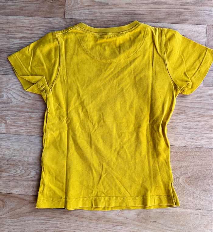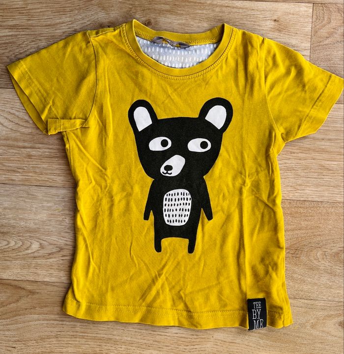 T-shirt manches courtes en 92 cm de la marque Kids by Lindex. Couleur jaune, moutarde avec un petit ours.