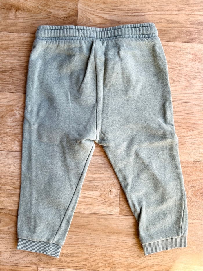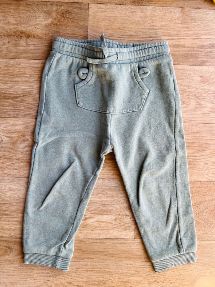 Pantalon de jogging, vert de chez Kiabi en 36 mois/94 cm . État satisfaisant car a perdu son Eclat