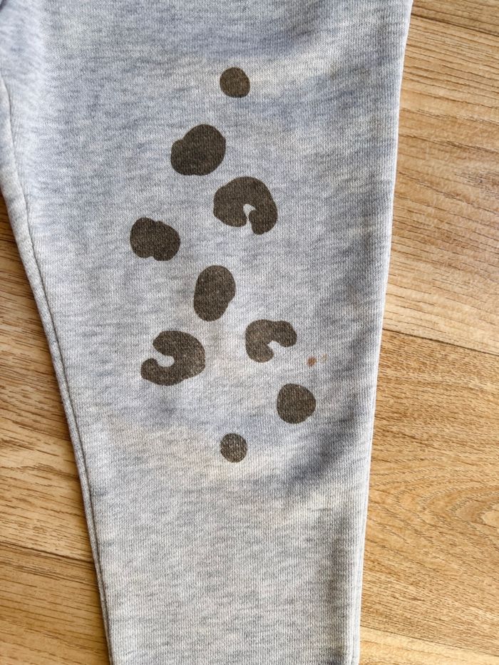 Jogging gris en 86/92 cm de la marque Lupilu en très bon état, mais quelques petites taches au niveau d’un genou et sur le haut des hanches( voir photo).