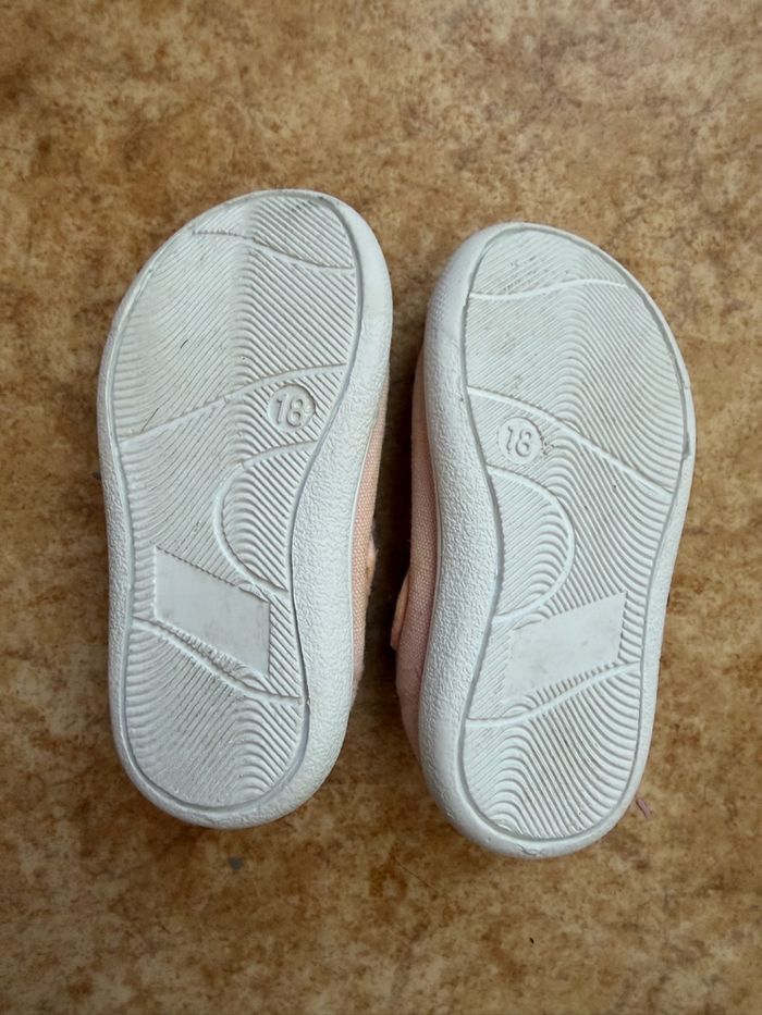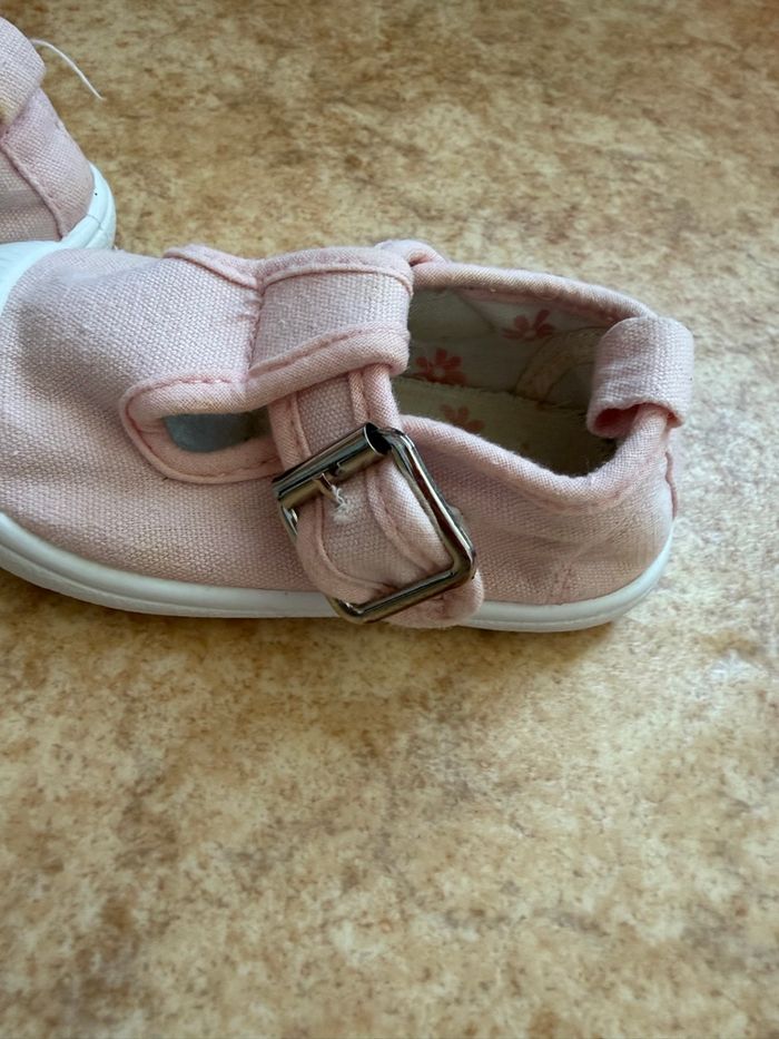 Jolies chaussures rose pastel pour bébé Pointure 18, fermeture scratch, faciles à enfiler. idéales pour les premiers pas ou pour compléter une jolie tenue. Très bon état, peu portées. Marque :In Extenso Taille : 18