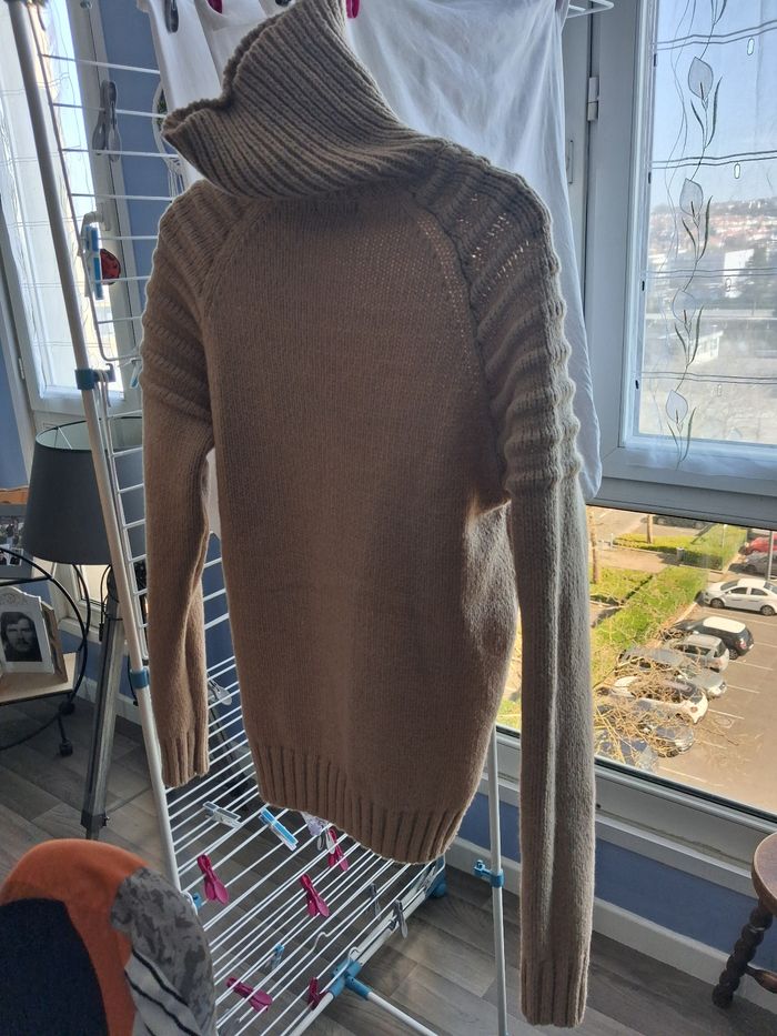 Pull Ralph Lauren torsadé beige col camionneur – Taille L – coton & soie