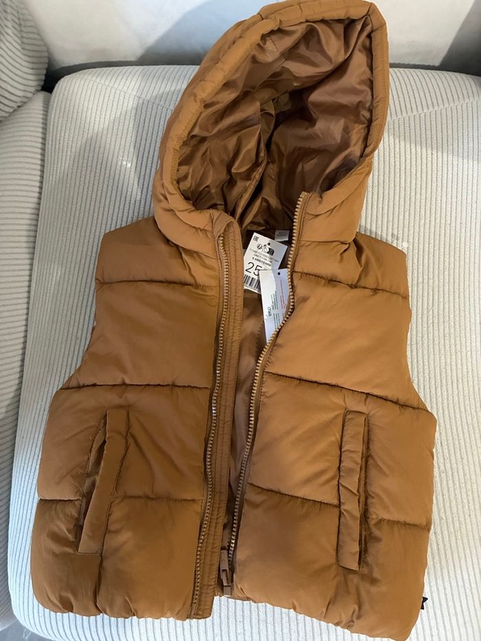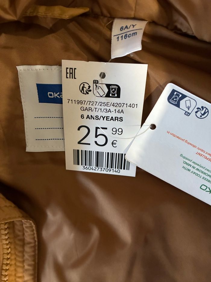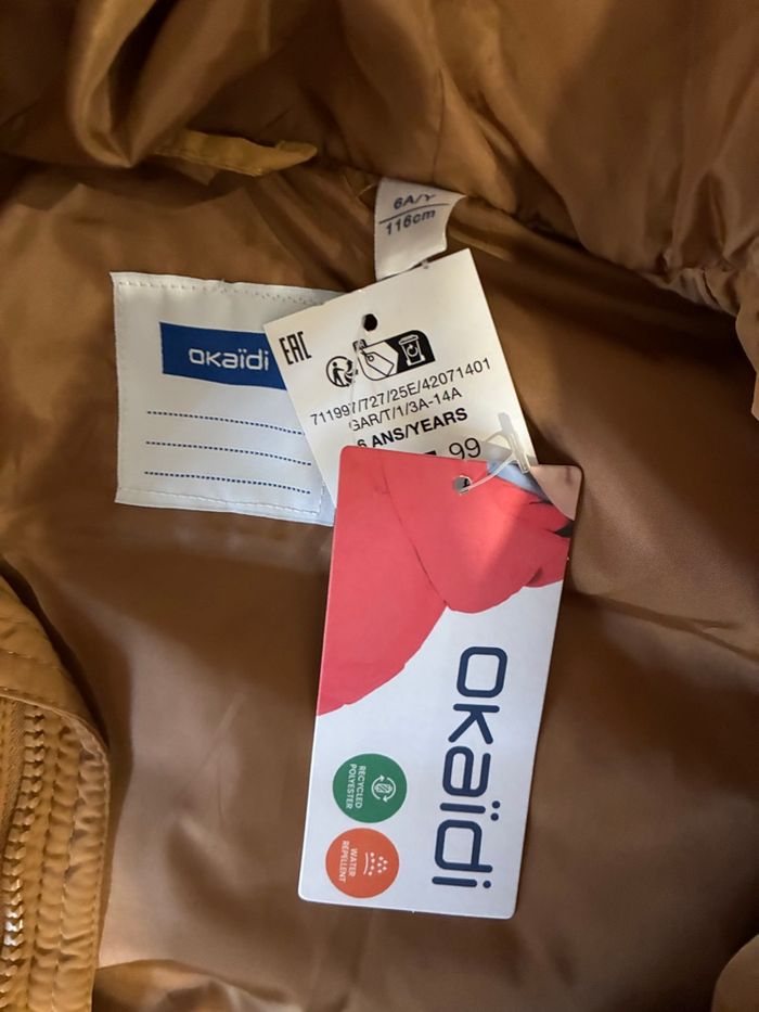Doudoune sans manche neuve avec étiquettes - marque: okaidi - taille: 6 ans - couleur: camel -modèle: mixte - prix d’achat: 25,99€